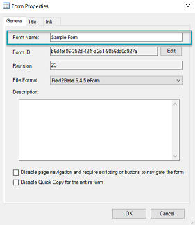 You can set a customized title for your form which includes data from Form Regions. This is very useful when receiving e-mailed PDFs or when trying to find a specific Sent Form. For example, the full name for a Sent Form could be: Sample Form - Customer: Jane Doe Date: 4/28/2018.